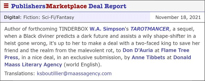 Thanks to my wonderful agent and the people at Flame Tree Press, Tarotmancer, sequel to Tinderbox will now see publication! I’m so happy! Dance with me!
