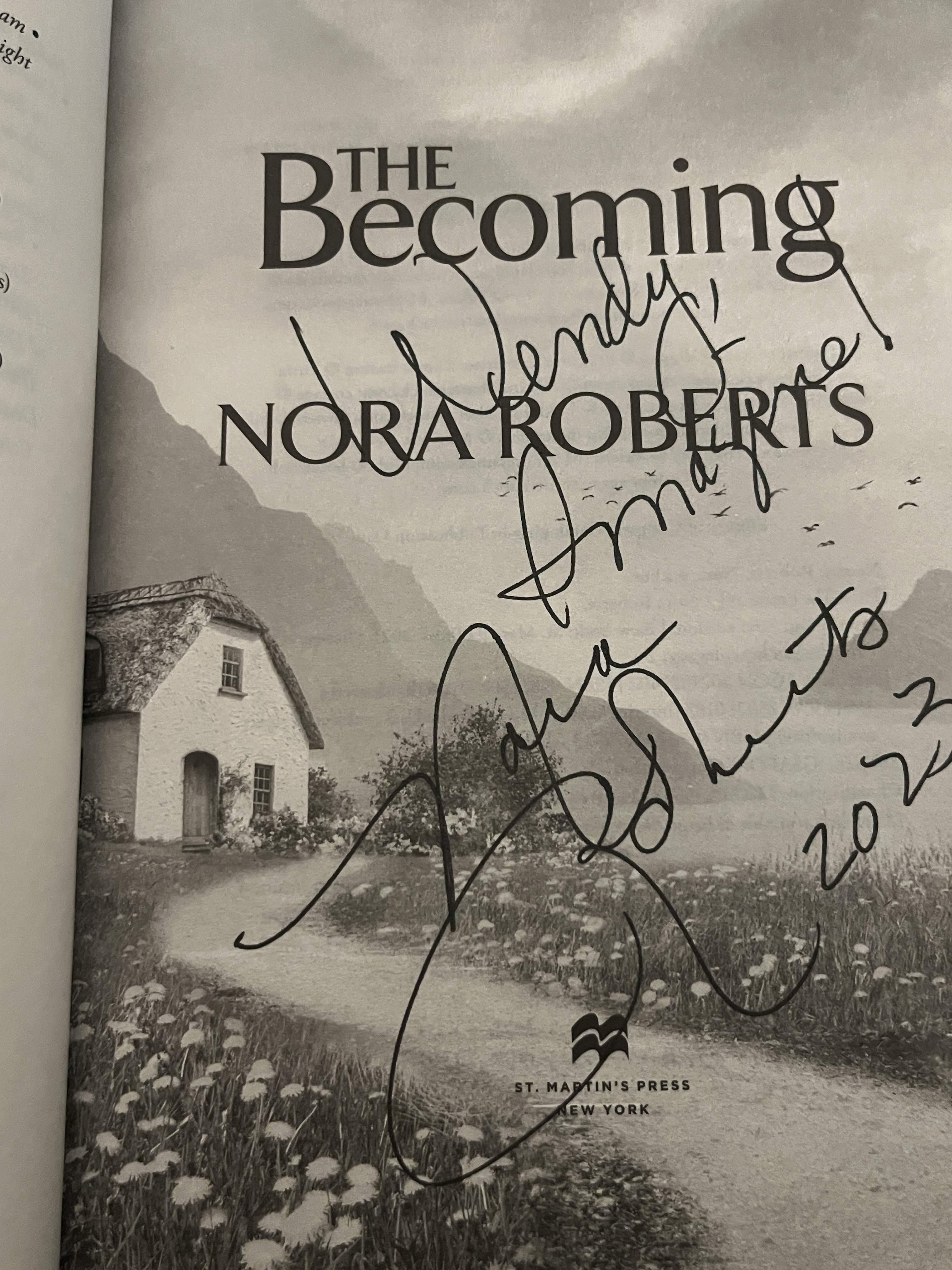 I recently participated in the Turn the Page Bookstore Girl’s Night Out Author Event. I met so many wonderful authors there and got to commiserate with them and readers for a few hours. But the highlight of my evening was meeting the fabulously talented NORA ROBERTS! And yes, I was fangirling all over the place. I bought her Dragon Heart Legacy Trilogy which she so graciously signed! Like the little boy said, “I’m going to remember this day forever!”
